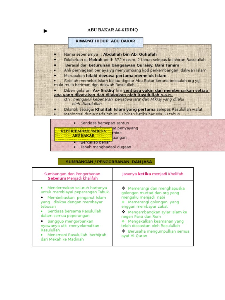 Melantik khalifah sebagai penggantinya untuk menghindarkan selisih faham umat islam apabila beliau meninggal dunia. Ayah utsman bin amir 540 maret 635 juga dikenal dengan nama abu quhafah. Dengan tegas abu bakar ash shiddiq pun memerangi mereka sampai ke akar akarnya. Pengenalan nama sebenar khalifah abu bakar kab ialah abdullah bin uthman bin umar bin ka ab bin sa ad bin taym bin murrah al taymi dari bani taim.