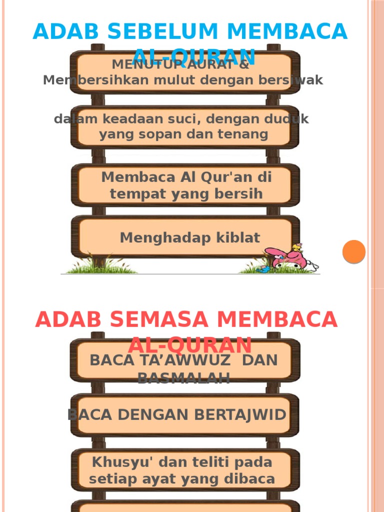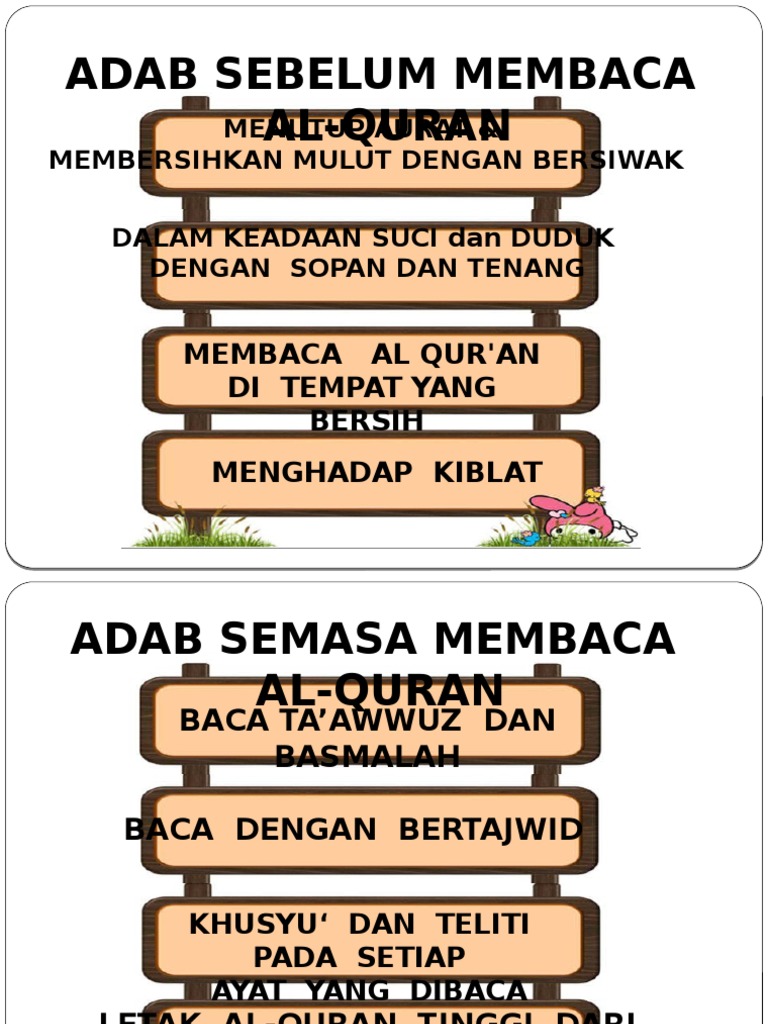 Adab yang baik ketika membaca al quran 3 1. Memahami pengertian adab terhadap al quran 3 2. Membaca dengan pelan tartil atau tidak cepat cepat agar dapat menghayati ayat yang dibaca. Dan pada kesempatan ini izinkan saya untuk sedikit menyampaikan informasi tentang adab membaca al quran yang baik dan benar sesuai dengan ajaran agama islam.