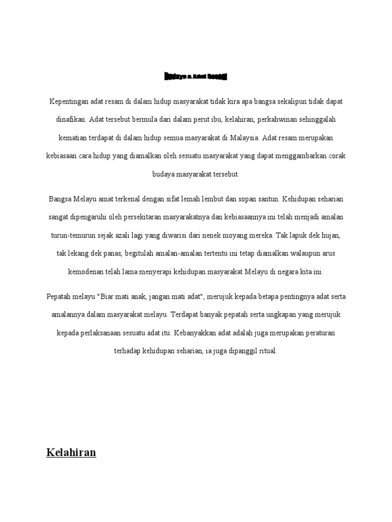 Adat dan budaya rakyat malaysia. Adat cukur jambul adat berkahwin adat berkhatan adat pertabalan raja dan sebagainya. Budaya asli kawasan itu berasal dari puak pribumi bersama dengan orang melayu yang berpindah ke sana pada zaman purba. Negara malaysia merupakan negara yang kaya dengan kepelbagaian dan keunikan bangsa dan etniknya. Masyarakat malaysia telah digambarkan sebagai asia dalam miniatur.