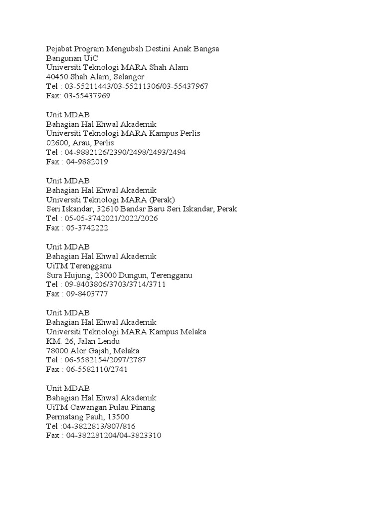 Bahagian hal ehwal akademik universiti teknologi mara cawangan negeri sembilan kampus kuala pilah 72000 kuala pilah 06 483 2113 2358 2111 2151. Universiti teknologi mara uitm cawangan pulau pinang kampus permatang pauh alamat. Yup uitm permatang pauh bukit mertajam. Tapi bertam tu utk kos farmasi dan sains kesihatan etc diploma.