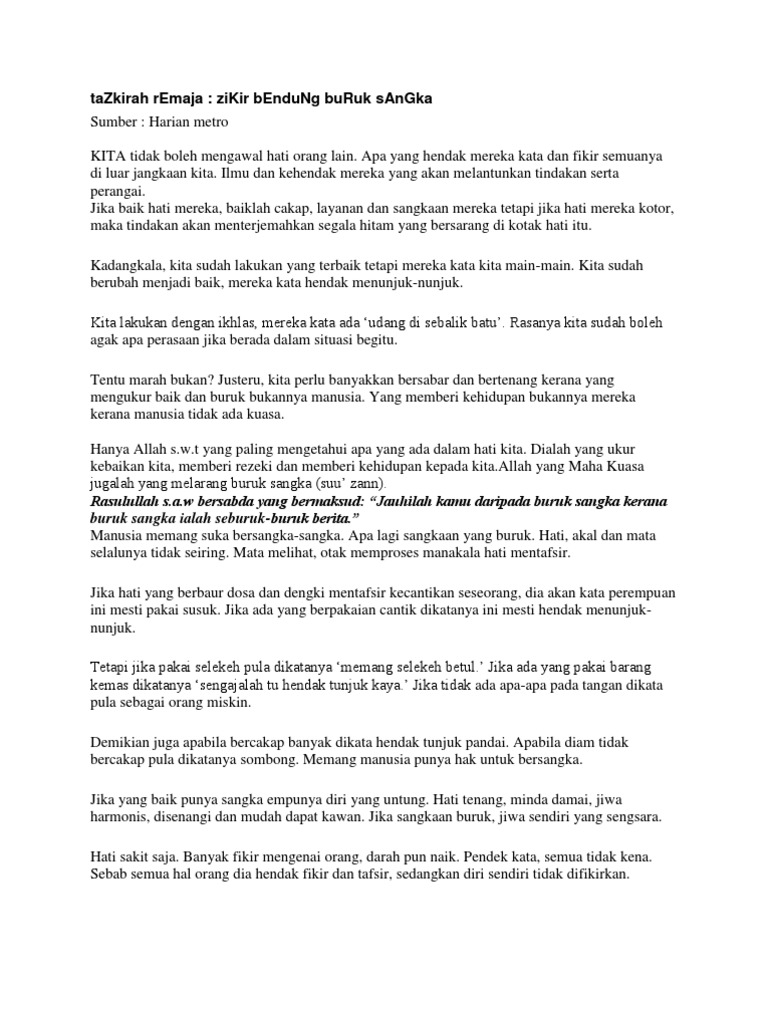 Tazkirah ringkas tentang kehidupan 1. Sumber ilmu peringatan dan inspirasi kepada semua untuk menjalani kehidupan dengan nilai islam. Anda haruslah bersemangat untuk mengecapi kejayaan dalam hidup serta mendapat tempat di arena kerjaya. Manusia akan mati dan hidup kembali di akhirat untuk diperhitungkan ke syurga atau neraka.