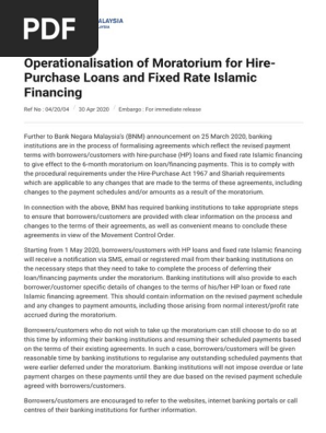 On april 30 bnm released another statement to clarify the moratorium specifically for hire purchase loan and fixed rate islamic financing. This applies to those with housing fixed term overdraft and hire purchase loans however customers who are undischarged bankrupts or have financing in arrears for 90 days and more are not eligible for this aid. Save more with our non compounding charges credit cards. Kuala lumpur april 30 islamic banking institutions will be reaching out to their customers directly to provide greater clarity on the moratorium on islamic hire purchase and islamic fixed rate financing products.