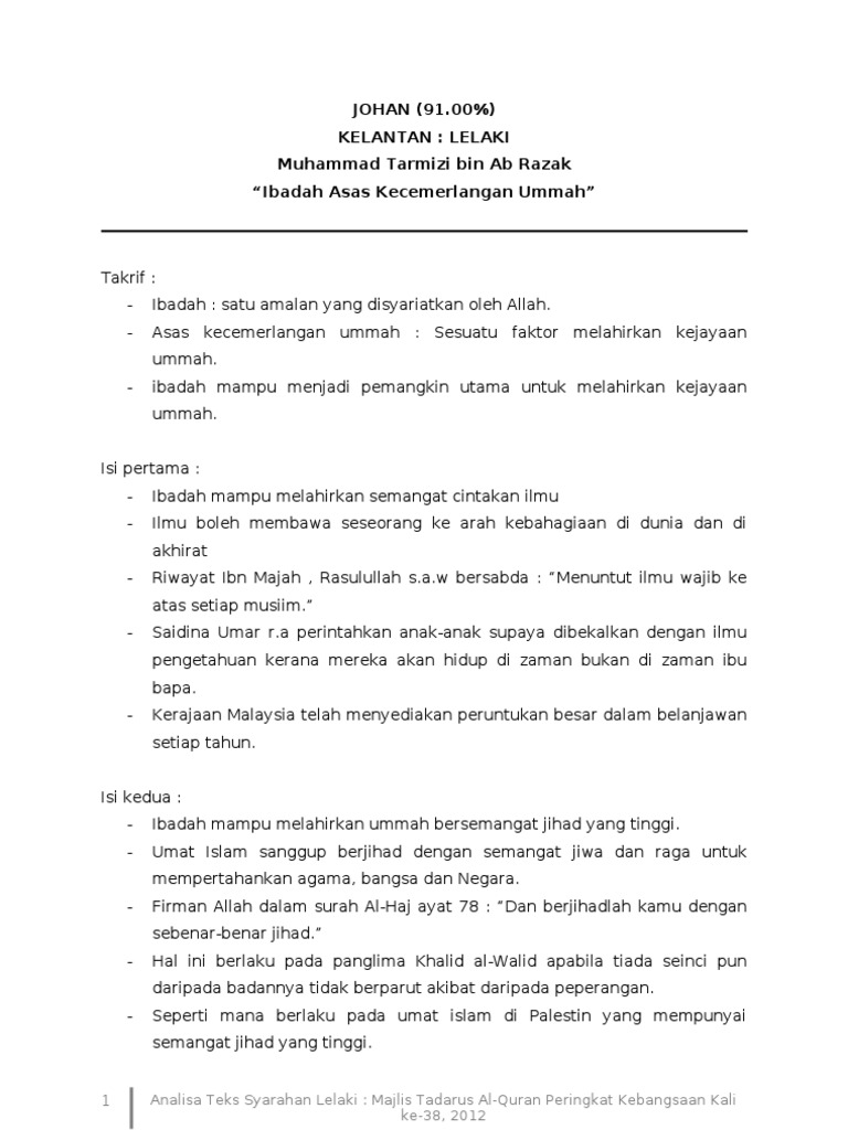 Contoh Teks Syarahan Bahasa Arab Sekolah Menengah