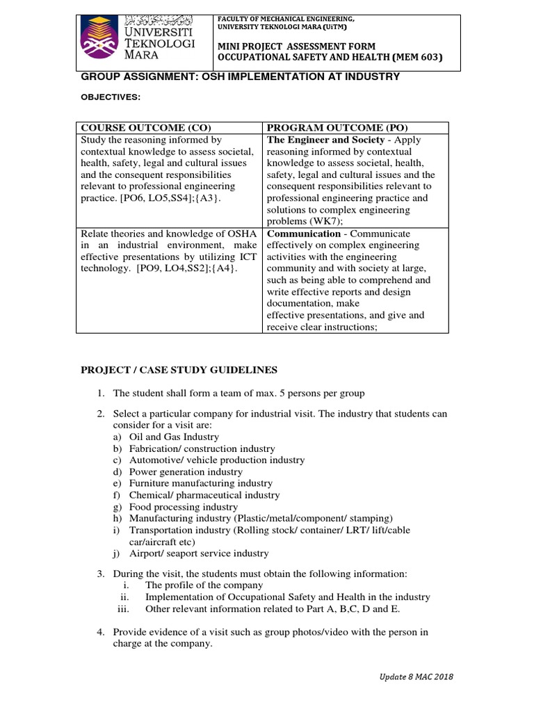 More filters sort most info english courses available pre masters available scholarships available the rankings popularity reviews university of malaya malaysia. The programme aims to provide a coherent body of theoretical and applied professional knowledge relevant to the area of occupational safety health and environment ohse at degree level. Philosophy and leadership of occupational health and safety improvement 45 credits core. The 2 year part time top up programme provides a direct articulation path for occupational safety and health osh diploma holders or equivalent e g.