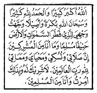 Doa iftitah dalam solat sunat. Sunat membaca al fatihah dengan suara yang kuat pada tempat tempat yang ditentukan iaitu pada dua rakaat yang pertama solat maghrib isyak dan subuh solat jumaat dua hari raya gerhana bulan minta hujan tarawih witir di dalam bulan ramadhan dan solat untuk mengerjakan tawaf kalau dikerjakan pada waktu malam dan subuh. Imam membaca do a iftitah terlalu panjang. Kemudian do a yang dipilih tersebut dibaca dalam semua shalat dari sejak sd sampai tua. Ia termasuk dalam kategori sunat haiat iaitu sunat yang tidak akan menyebabkan sujud sahwi apabila ditinggalkan.
