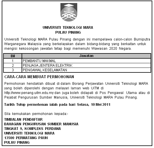 Iklan Jawatan Kosong Uitm Pulau Pinang