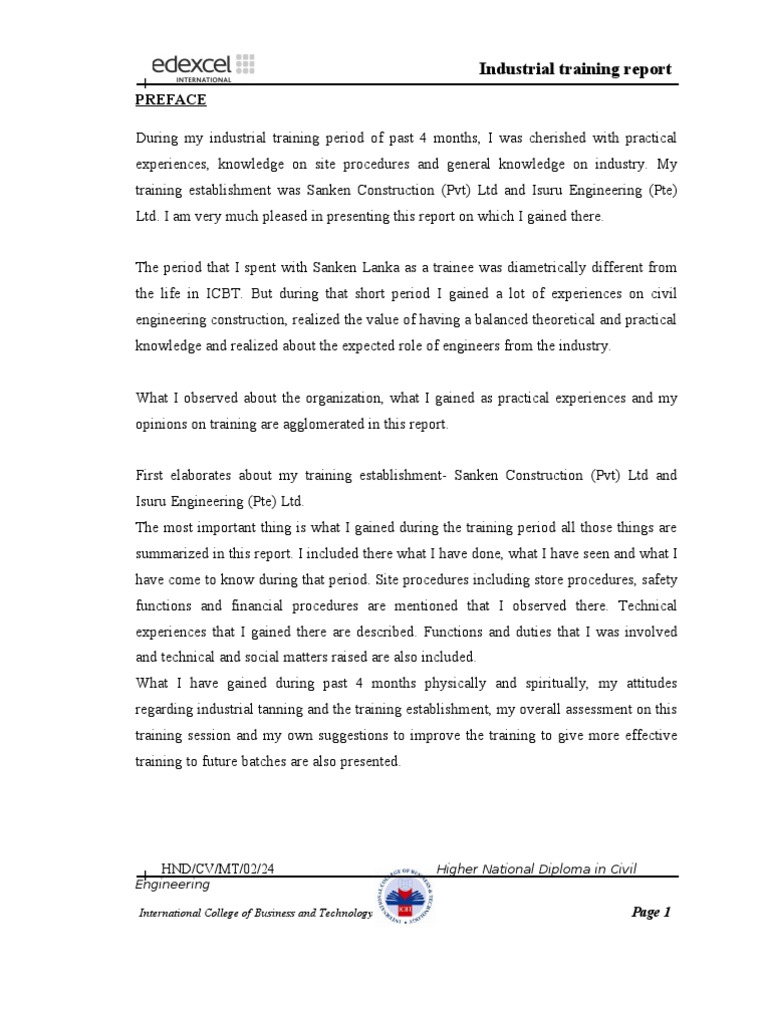 It will very ease you to see guide industrial training report samples for civil engineering as you such as. Prepare presentation ii minute. Two semesters prior to industrial training in order to assist them in applying and securing industrial training placement. Iium has successfully comple ted his engineering i ndustrial training from 8 th june 2015 till 7 th september 2015 at telekom malaysia berhad.