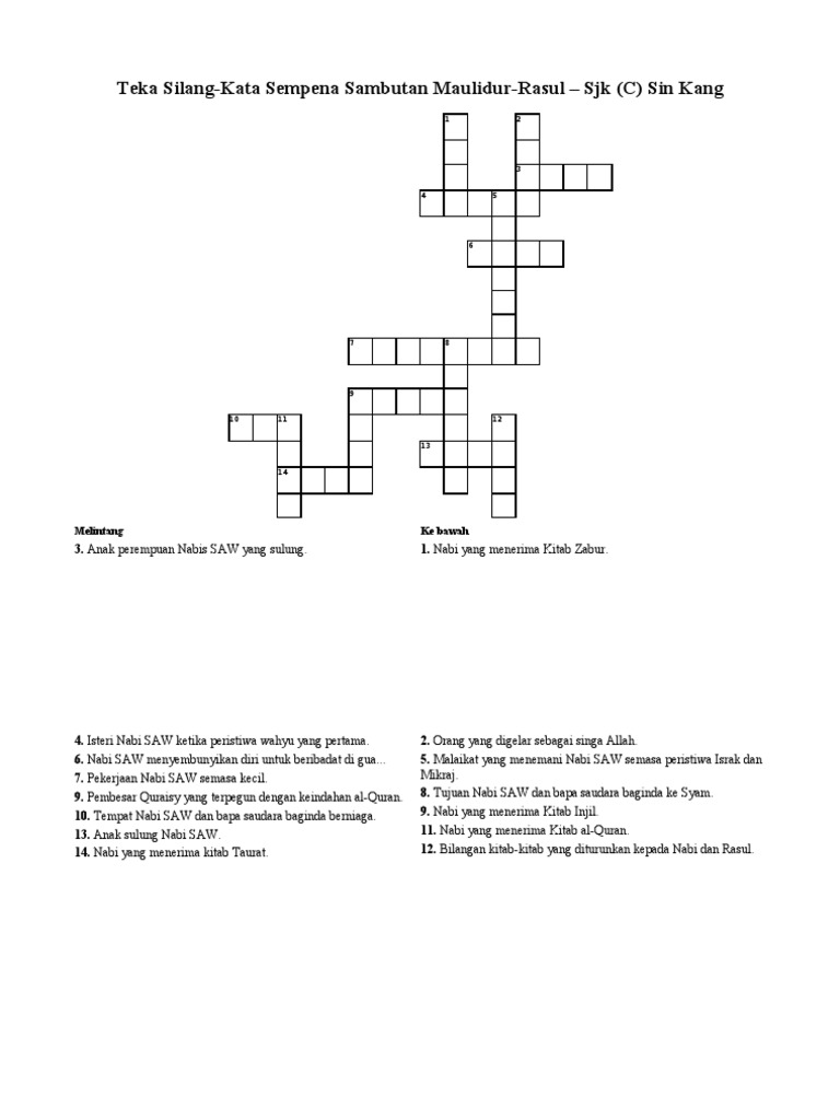 Jawapan teka silang kata maulidur rasul. Tidak kira apa kenapa awak mahu teka silang kata berserta jawapan ini admin sedia berkongsi bahan tersebut. 1 klik start untuk mula menjawab kuiz 2 klik next untuk soalan seterusnya sehingga selesai. Tak kira apa sebab apa anda semua mencari teka silang kata maulidur rasul ini pihak redaksi sedia membantu bahan tersebut. Adakah anda semua tengah mencari bermacam teka silang kata maulidur rasul yang sangat baik untuk para murid perolehi.