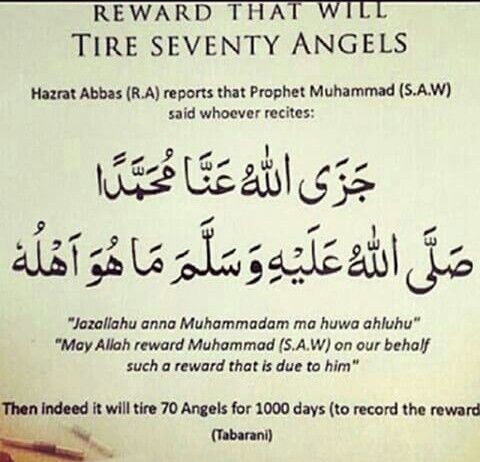 Jazallahu anna sayyidana muhammadan shallallahu a laihi wa sallama ma huwa ahluh ertinya. Dalam sabdanya saw barangsiapa mengucapkan jazallahu anna muhammad maa huwa ahluhu semoga allah membalas jasa muhammad terhadap kami sebagaimana mestinya maka ia pun telah memayahkan 70 malaikat menulis selama 1000 pagi. Jazallahu anna muhammadan sallallahu alaihi wasallam ma huva ahluhu then indeed it will tire 70 angels for 1000 days to record the reward. Semoga allah memberikan balasan kebaikan kepada pemimpin kita nabi muhammad saw.