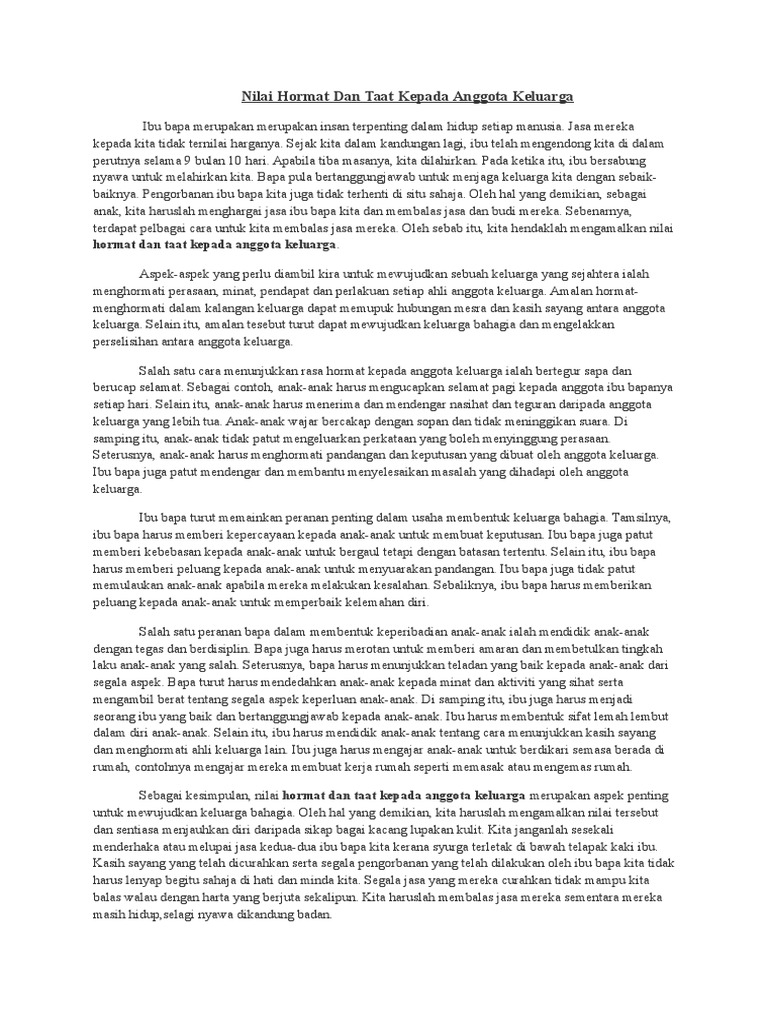 Kepentingan amalan hormat menghormati. Hormat menghormati amat penting untuk memastikan masyarakat hidup dalam keadaan aman dan damai. Kepentingan amalan hormat menghormati antara anggota keluarga mengeratkan hubungan kasih sayang mengelakkan konflik atau masalah mewujudkan keluarga yang harmoni memudahkan penyelesaian masalah melalui perbincangan sesama keluarga 12 17 2013 siti nabilah binti marzuki 6 7. Ini menunjukkan betapa pentingnya amalan hormat menghormati dalam kehidupan seharian kita. Tidak mustahil jika hilang rasa hormat dalam diri masyarakat negara kita akan menjadi hura hara kerana pergaduhan dalam masyarakat.