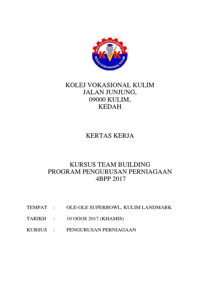 Kursus team building program pengurusan perniagaan 4bpp 2017. Kertas cadangan kursus team building 2019 institut pendidikan guru kampus kota bharu tarikh. Google facebook twitter newer post older post search here. Unit psikologi kaunseling dengan.