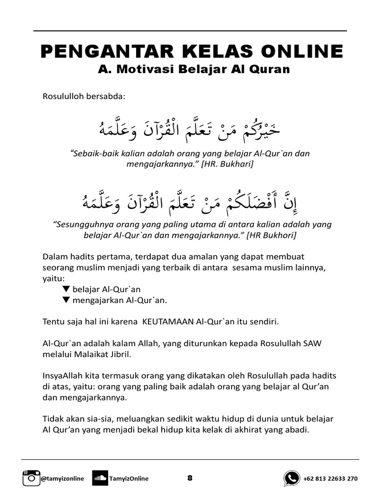 Keutamaan belajar dan mengajarkan al quran pdf. Sebaik baik kalian adalah yang belajar al qur an dan mengajarkannya pesan untuk ananda 1. Karena keutamaan yang tinggi inilah yang membuat abu abdirrahman as sulami salah seorang yang meriwayatkan hadits ini rela belajar dan mengajarkan al qur an sejak zaman utsman bin affan hingga masa al hajjaj bin yusuf ats tsaqafi. Belajar dan mengajarkan al qur an adalah kewajiban setiap orang islam. Dan dari hadits ini juga dapat dipahami bahwa orang yang mengajar al qur an harus mengalami fase belajar terlebih dahulu.