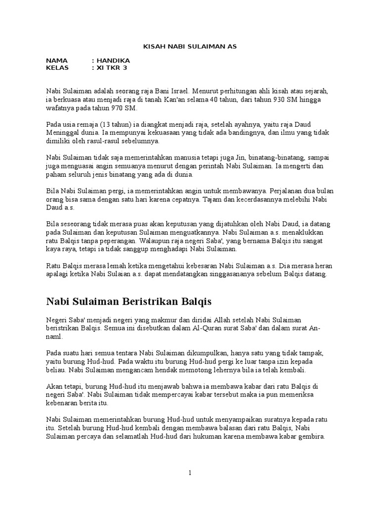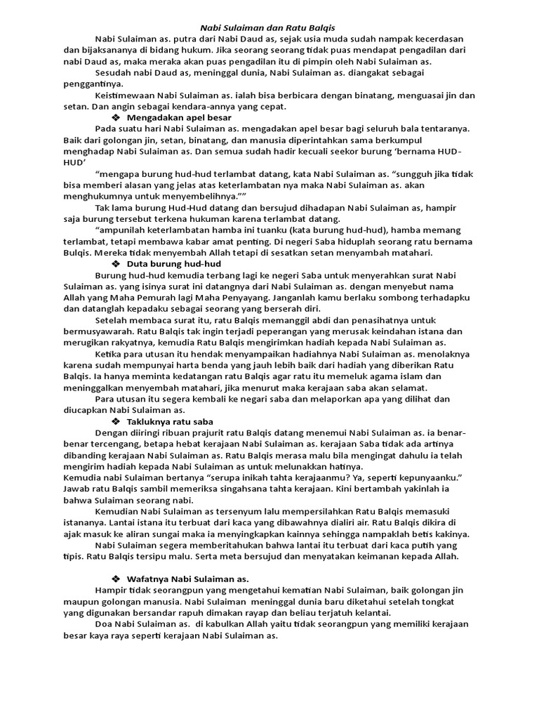 Kisah nabi sulaiman as singkat lengkap dan jelas lainnya adalah tentang ratu balqis kisah ini sangat melegenda dan terkenal. Kamu sedang membaca artikel tentang kisah singkat nabi sulaiman dan ratu balqis silahkan baca artikel dunia nabi tentang kisah nabi yang lainnya. Daftar isi1 kisah nabi sulaiman dan ratu balqis beserta mukjizatnya1 1 kisah nabi sulaiman singkat1 1 1. Pada artikel kali ini kami ingin men sharing kisah nabi sulaiman dengan ratu bilqis.
