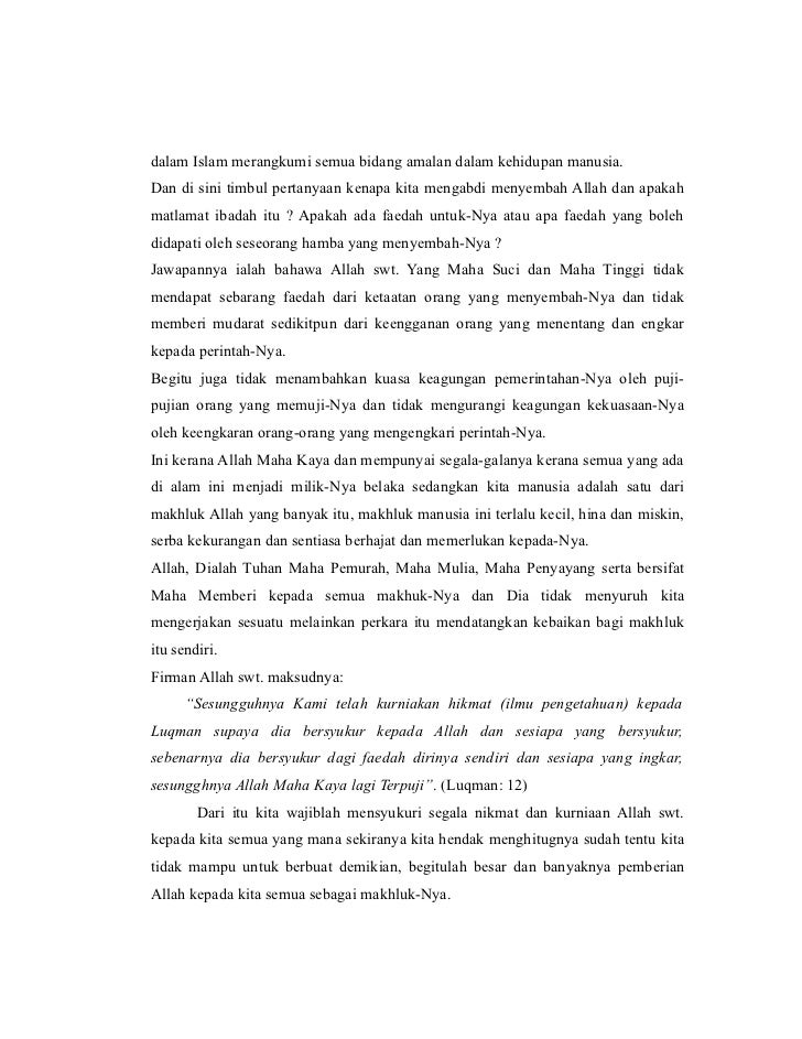Sedangkan dalam islam berkenaan dengan manusia selaku hamba allah akhlak manusia terhadap allah. Konsep ibadah dalam al qur ankajian surat al fatihah ayat 1 7 disusun oleh irvan nim. Konsep tauhid mengandung implikasi doktrinal lebih jauh bahwa tujuan hidup manusia haruslah dalam kerangka beribadah kepada allah. Penelitian ini didasarkan pada kondisi masyarakat islam yang mengalami keterbelakangan dalam bidang sosial ekonomi politik tradisi.