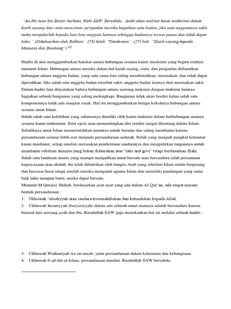 Konsep persaudaraan dalam islam tingkatan 4. Namun dari kalangan sahabat memberikan teladan hingga pada tahapan kelimat ini yaitu itsar mendahulukan orang lain dari pada diri sendiri. Ini adalah tingkatan tertinggi dalam tingkatan ukhuwah islamiyah setelah 4 t ta aruf tafahum fa awun dan takaful. Zakaria 1 babbabbabbab 1111 asas pemikiran islamasas pemikiran islamasas pemikiran islamasas pemikiran islam pelajaran 1 konsep ketuhanan 3 pelajaran 2 konsep kerasulan 22 pelajaran 3 konsep insan 37 pelajaran 4 konsep alam 46 pelajaran 5 tanggungjawab memelihara dan memulihara alam 55. Nota pendidikan islam tingkatan 4 kbsm tilawah dan hadis.