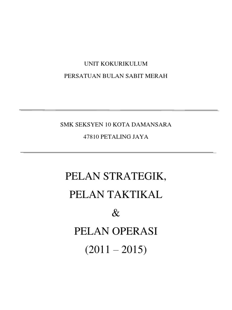 Pelan strategik pelan operasi dan pelan taktikal. Pelan taktikal dan pelan operasi 2013 senarai kandungan pelan taktikal dan pelan operasi sekolah menengah kebangsaan kulai besar 2013 bil kandungan muka surat 1. Melahirkan guru dan murid yang kreatif dan inovatif proses aliran kerja. Memperluaskan peluang pendidikan yang berkualiti dan berkemampuan.
