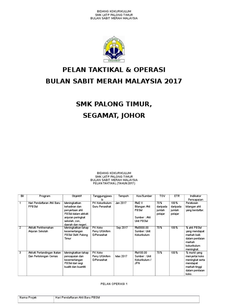 Walaupun ada persamaan antara perancangan taktikal dan operasi terdapat perbezaan yang jelas. 2014 pbs menengah rendah dan spm pelan taktikal 2014. Pelan operasi panitia bahasa inggeris 2016 nama projek. Guru januari 2019 penasihat sukan dan permainan ii.