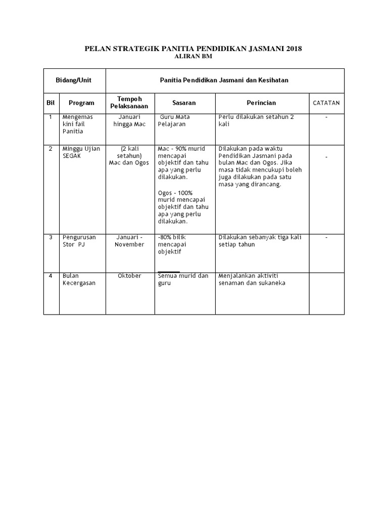 Bidang unit pendidikan jasmani dan kesihatan. Share to twitter share to facebook share to pinterest. Di dalam pelan ini juga mengandungi pelan operasi pelan taktikal bagi panitia pendidikan jasmani. Meningkatkan kecekapan pengurusan panitia strategi.
