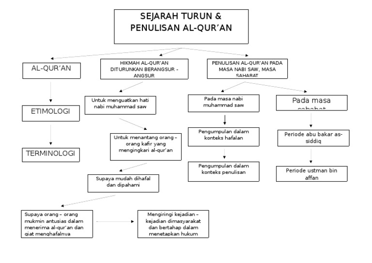 Peta konsep sejarah penurunan al quran. Sejarah penurunan al quran sebagaimana mana yang kita tahu bahawa al qur an ini diturunkan secara berperingkat peringkat. Al quran diturunkan allah dalam bentuk lisan bukan tertulis. Terjemahan at tibyan pengantar studi al qur an. Kepada rasulullah s a w sebagai utusan allah kepada umat manusia dalam.