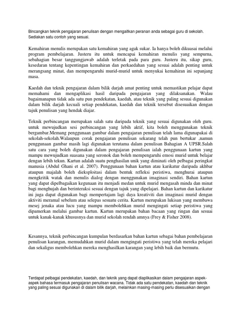Proses pengajaran dan pembelajaran kemahiran mengarang. Jurnal pendidikan bahasa melayu malay language education mylej 1 1. Strategi pengajaran tidak langsung merupakan strategi berpusatkan pembelajaran yang akan menggalakkan penglibatan murid dalam proses pembelajaran. Begitu pula dalam era globalisasi dimana teknologi komputer yang berkembang dengan pesat menggantikan sebagian pekerjaan manusia. Mengarang merupakan satu kemahiran yang perlu diajarkan dan diberi latihan kerana ia penting dikuasai sebaik mungkin oleh setiap pelajar sebab sebahagian besar proses pendidikan formal memerlukan kerja kerja menulis dan mengarang.