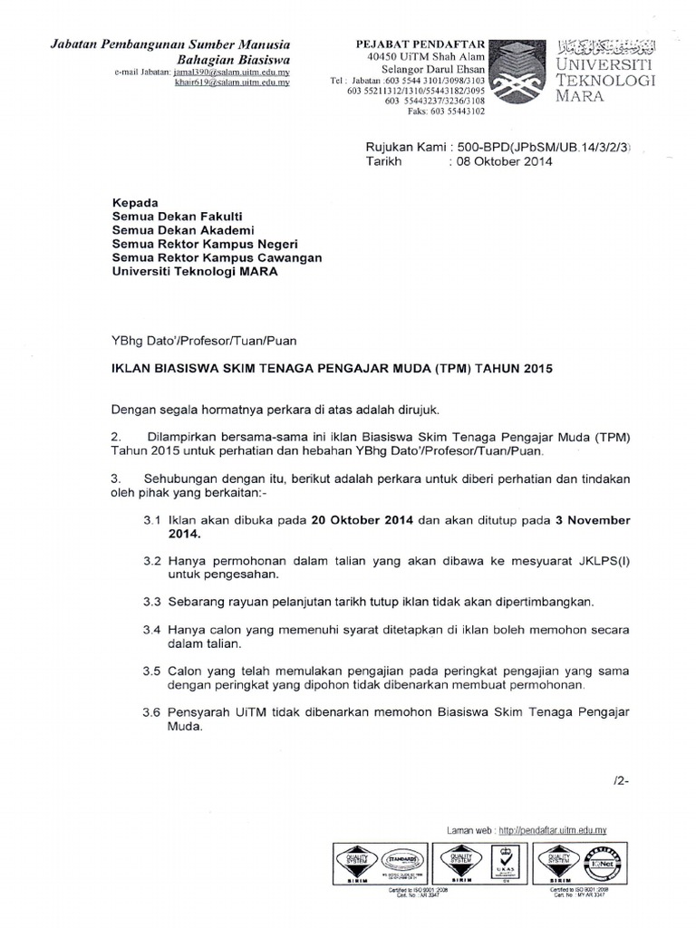 Tenaga pengajar muda uitm. Biasiswa tenaga pengajar muda uitm adalah skim yang ditawarkan oleh uitm kepada calon calon yang berminat untuk menjadi pensyarah di uitm skim tenaga pengajar muda uitm adalah hasil kerjasama pihak kpt dan uitm blog ini bukanlah blog rasmi biasiswa skim tenaga pengajar muda uitm ianya hanyalah blog khas untuk memberi sebarang maklumat mengenai tenaga pengajar muda samada untuk yang baru nak. Universiti teknologi mara media rasmi. Keperluan tenaga pengajar mengikut bidang. Jika anda ingin mengetahui lebih lanjut mengenai skim tpm berikut adalah laman web jpbsm uitm yang akan menerangkan syarat syarat tpm.